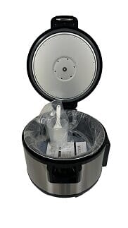 Rustfritt stål. Inner-kjele i klebefritt materiale. Varmholdingsfunksjon. Autostopp når risen er ferdig.